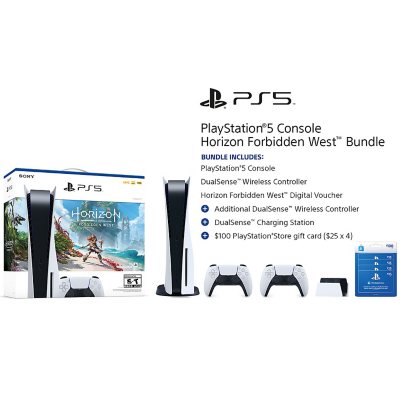 Playstation 5 Console Horizon Forbidden West Bundle 2 Wireless Dualsense Controllers Dualsense Charging Station And 4 X 25 Playstation Store Gift Cards Sam S Club